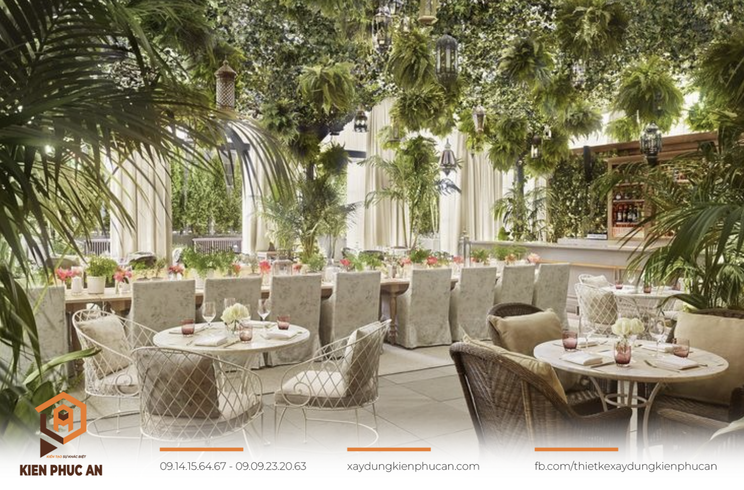 Nhà hàng cây xanh và trang trí thiên nhiên